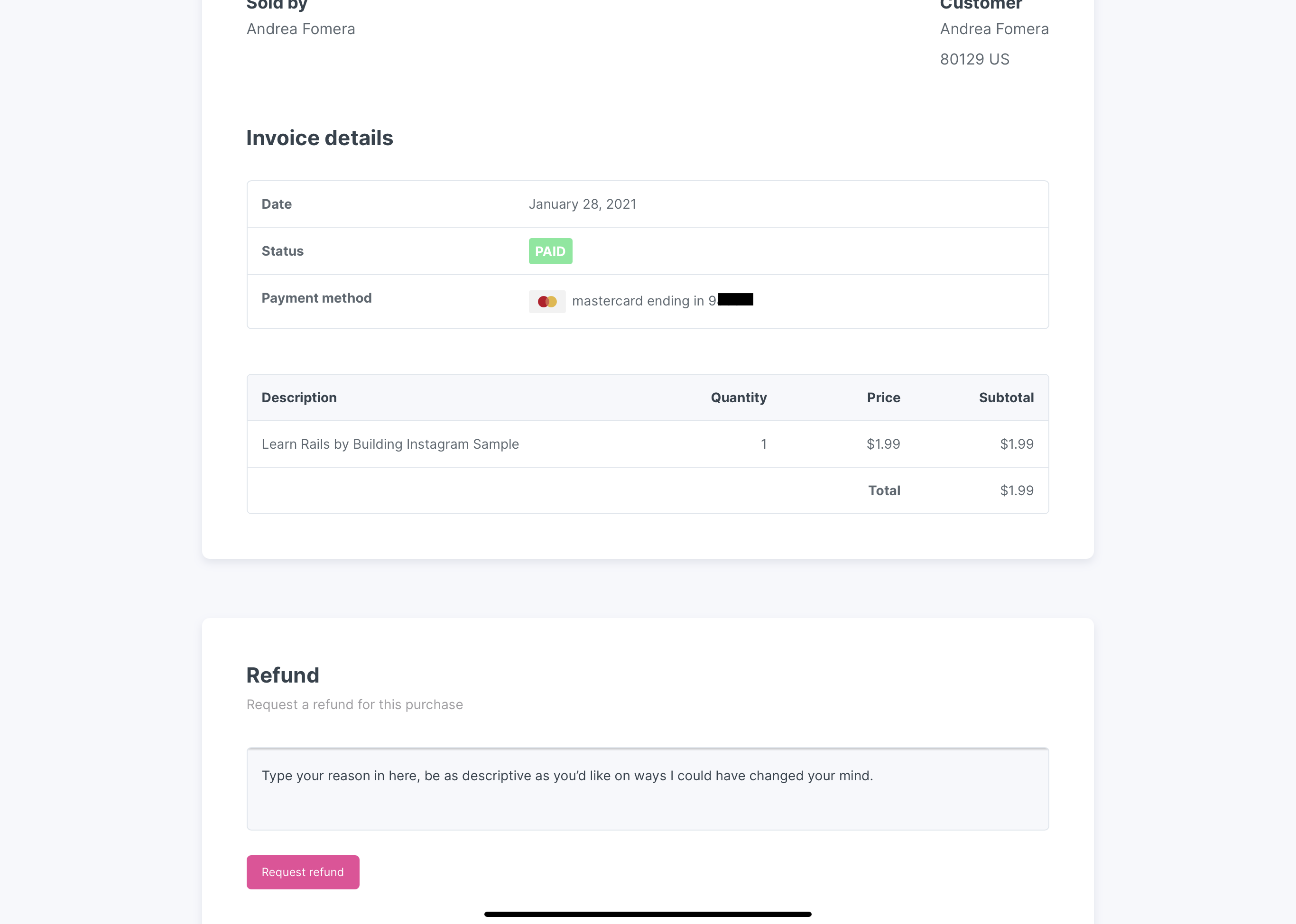 Fill in the box with more information on how I could have changed your mind or what went wrong and then press ‘Request refund’.